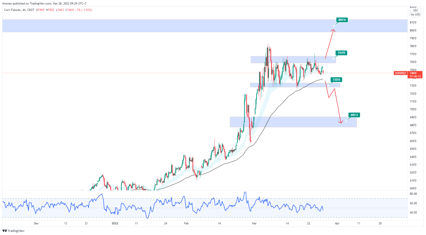 Ngô tiếp tục đi ngang trong biên độ 764 – 730 và chưa có tín hiệu rõ ràng. Nhà đầu tư nên đứng ngoài chờ đợi cơ hội, xu hướng chính là tăng cho nên vẫn ưu tiên kịch bản mua khi giá phá vùng 764, tp tại 805, trường hợp giá phá vùng hỗ trợ 730 sẽ bán xuống về vùng 685.