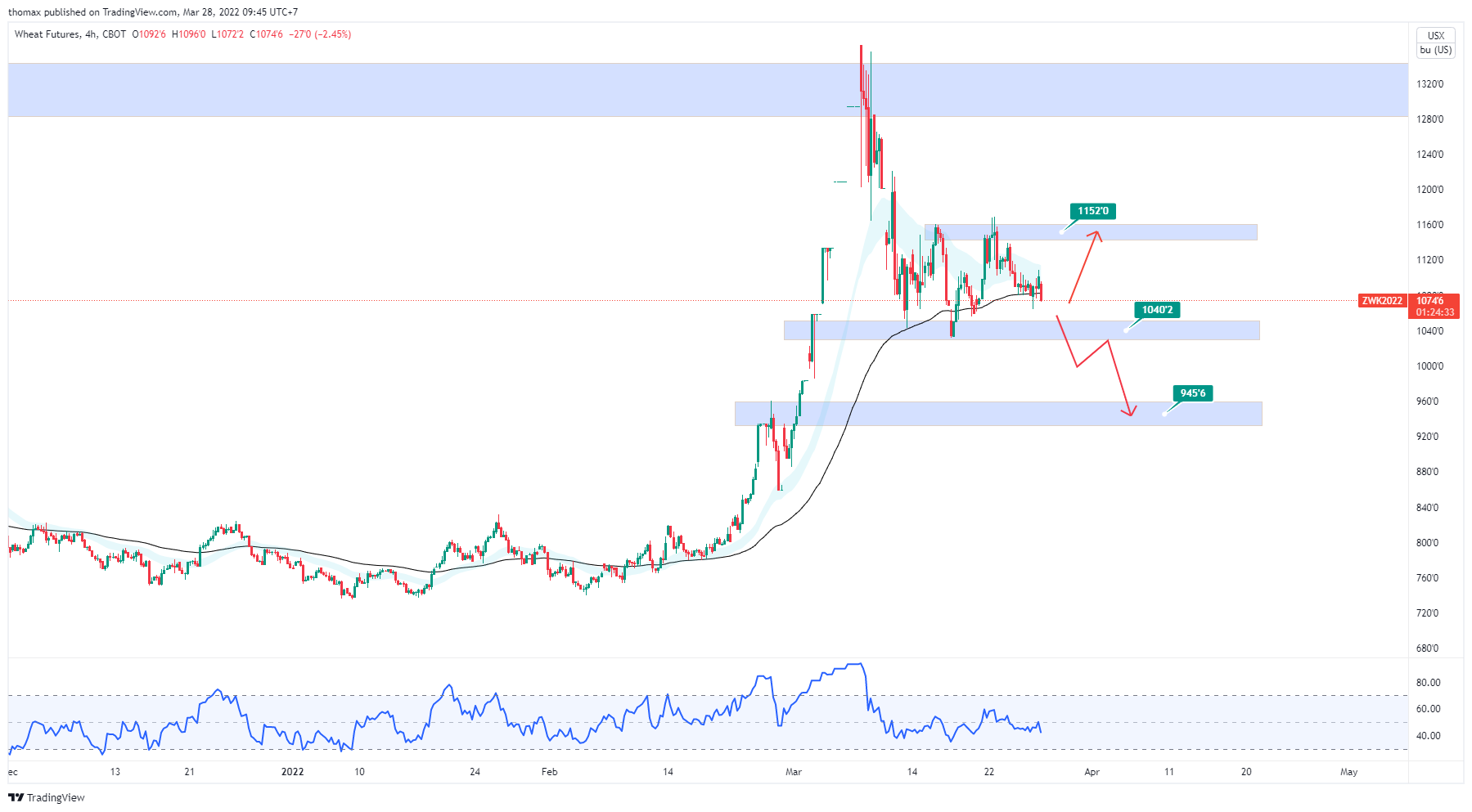 Lúa mì bị bán trở lại tại kháng cự 1152 sau nhịp hồi phục nhẹ tại hỗ trợ 1040. Sau nhịp giảm mạnh vừa qua giá lúa mì chưa thấy lực mua mạnh trở lại, tuy nhiên nếu vẫn giao dịch ổn định trên vùng 1040 nhà đầu tư có thể xem xét mua lên vùng 1152, sl tại 994. Trường hợp giá lủng hỗ trợ 1040 sẽ ưu tiên bán về hỗ trợ 945, sl tại 1107.