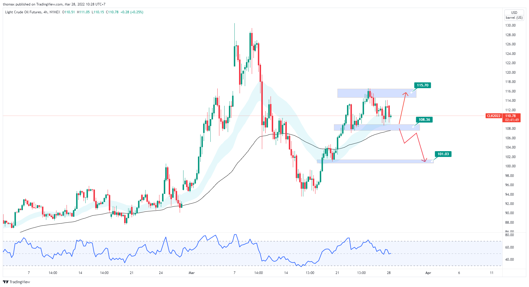 Dầu Wti đã tăng như kì vọng, hiện tại giá đang giao dịch trong biên độ 108 – 115. Nếu tiếp tục giao dịch trên vùng 108 nhà đầu tư có thể mở vị thế mua lên vùng 115, sl tại 106. Trường hợp giá lủng vùng 108 sẽ bán về quanh vùng 101, sl tại 113.