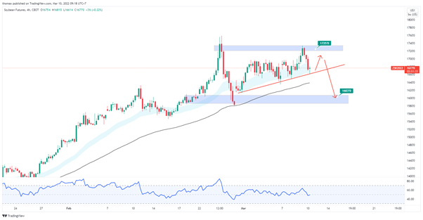 Đậu tượng đã bị bán trở lại khi lên test lại đỉnh cũ, hiện tại giá đang giao dịch trên đường xu hướng tăng và khả năng sẽ có nhịp hồi phục nhẹ. Nhà đầu tư nên ưu tiên mở bị thế bán xuống khi giá hồi phục lên dưới vùng 1725, tp tại 1603, sl tại 1747.