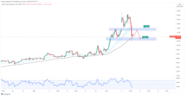 Kết thúc phiên giao dịch, giá WTI giảm 12,13% xuống mức 108,7 USD/thùng trong khi giá Brent giảm 13,16% xuống mức 111,14 USD/thùng.
