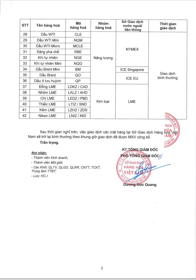 Thông Báo Lịch Nghỉ Giao Dịch Một Số Sản Phẩm Tại Sở Giao Dịch Hàng Hoá Việt Nam (11/07/2022)