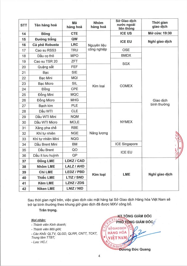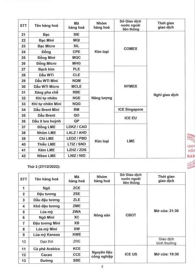 Thông Báo Lịch Nghỉ Giao Dịch Một Số Sản Phẩm Tại Sở Giao Dịch Hàng Hoá Việt Nam Ngày 23,26 & 27/12/2022